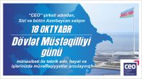 CEO şirkəti adından, Sizi və bütün Azərbaycan xalqını Dövlət Müstəqilliyi günü münasibəti ilə təbrik edir! Həyat və işlərinizdə müvəffəqiyyətlər arzulayırıq!